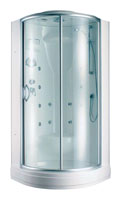 закрытая кабина, угловая, полностенная, двери раздвижные, материал стенок: стекло, турецкая баня, тропический душ, вертикальный гидромассаж, габариты (ШхВхД): 103.7x224x103.7 см
